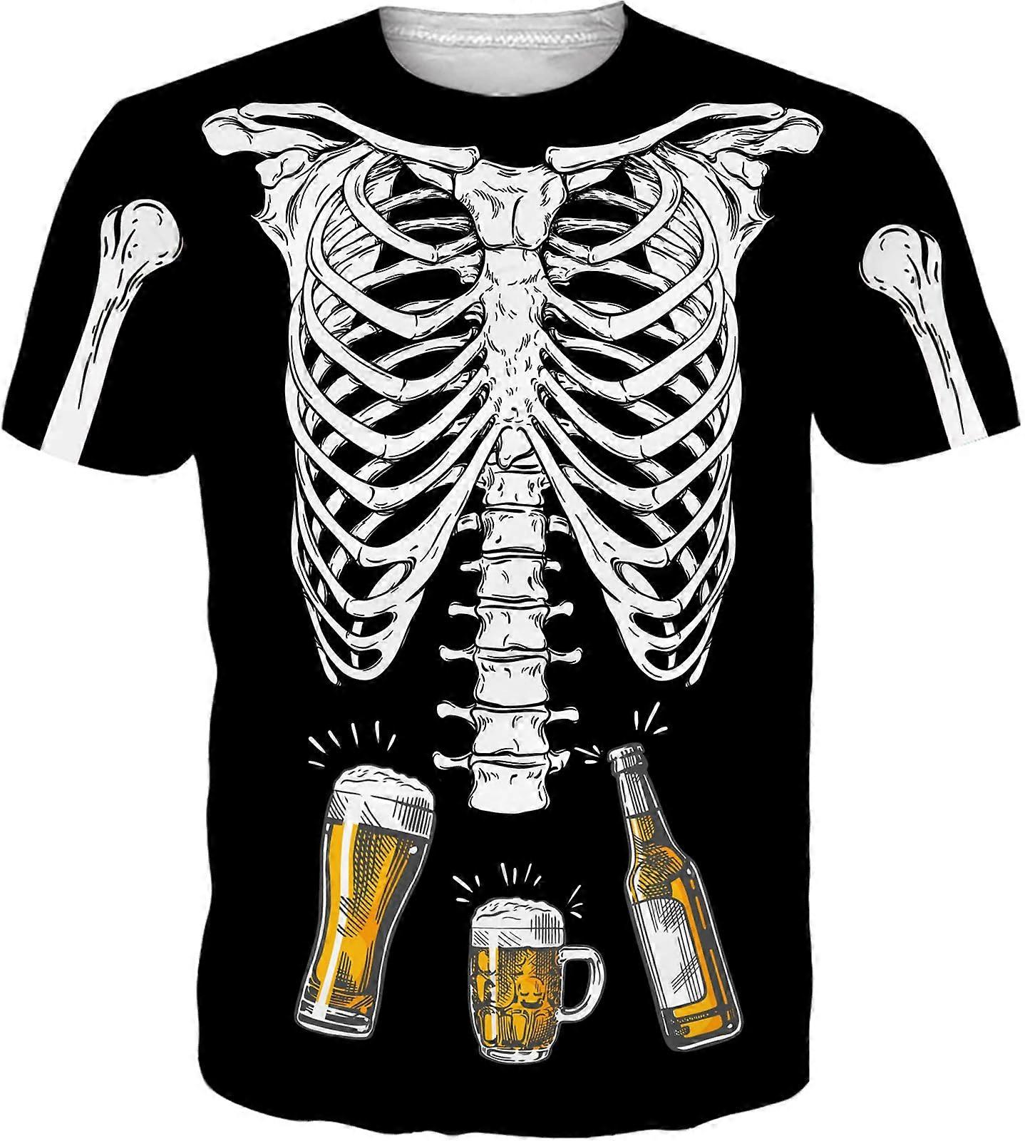 Men's Skeleton & Beer 3D Graphic T-Shirt - Halloween Skeleton Print Casual Short Sleeve Tee
