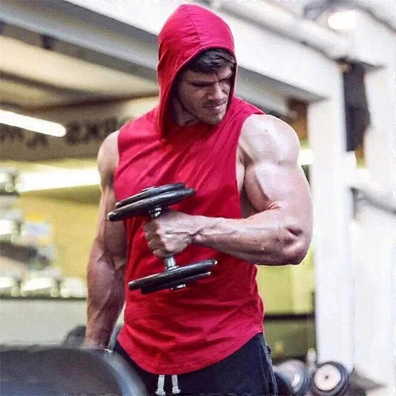 Men's Sleeveless Cotton Muscle Tank Top Hoodie For Fitness & Training