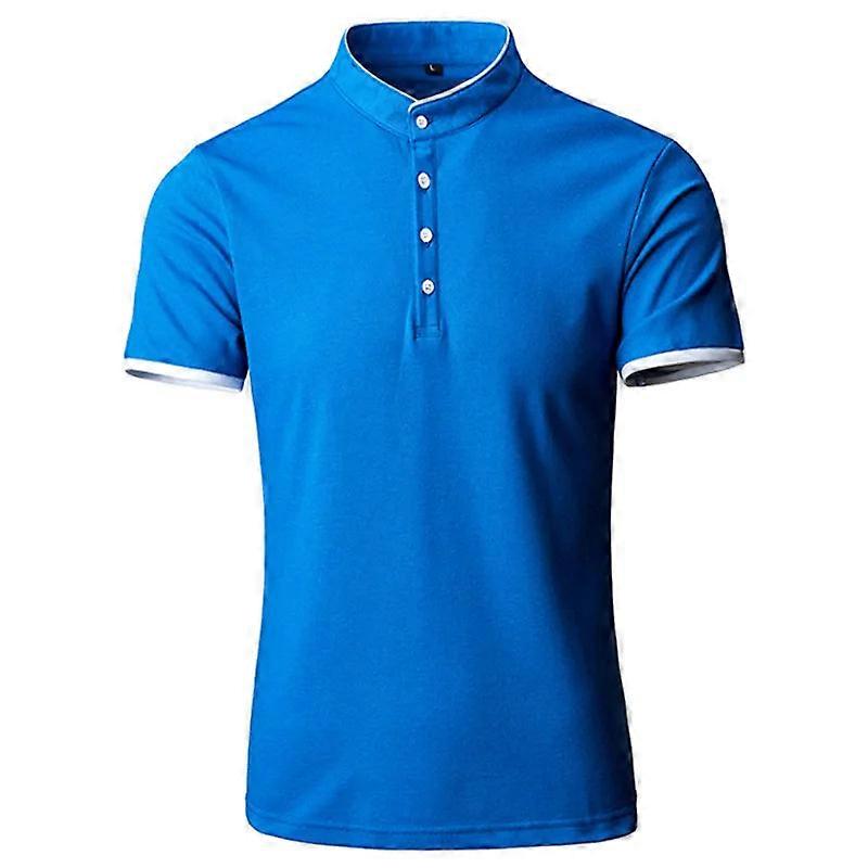 Men's Slim Fit Mandarin Collar Polo Shirt, Breathable Solid Color Summer Casual