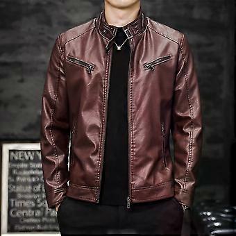 Men's Slim-Fit PU Leather Motorbike Jacket-Washed Claret,Size M-4XL Claret,4XL