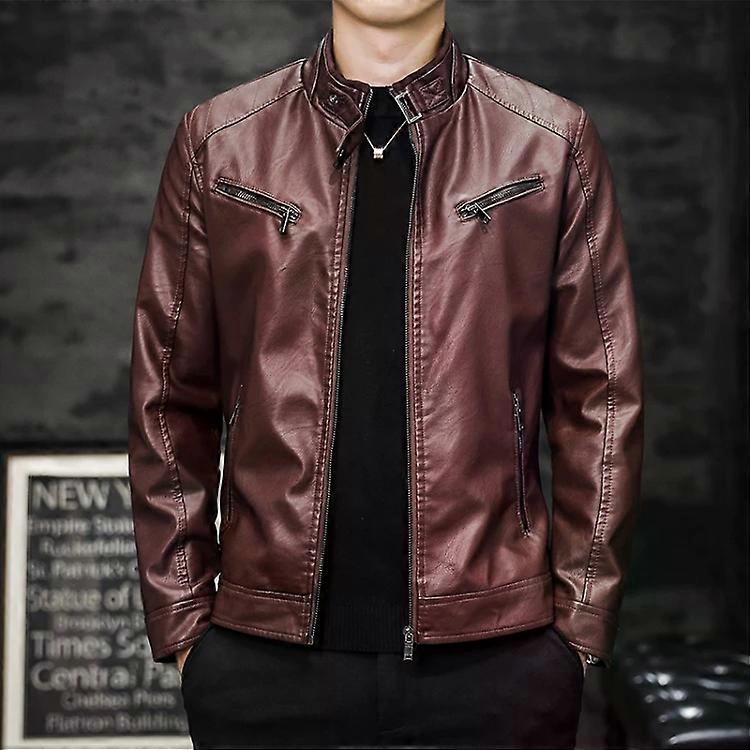 Men's Slim-Fit PU Leather Motorbike Jacket-Washed,Padded,Claret,M/XL Claret,XL