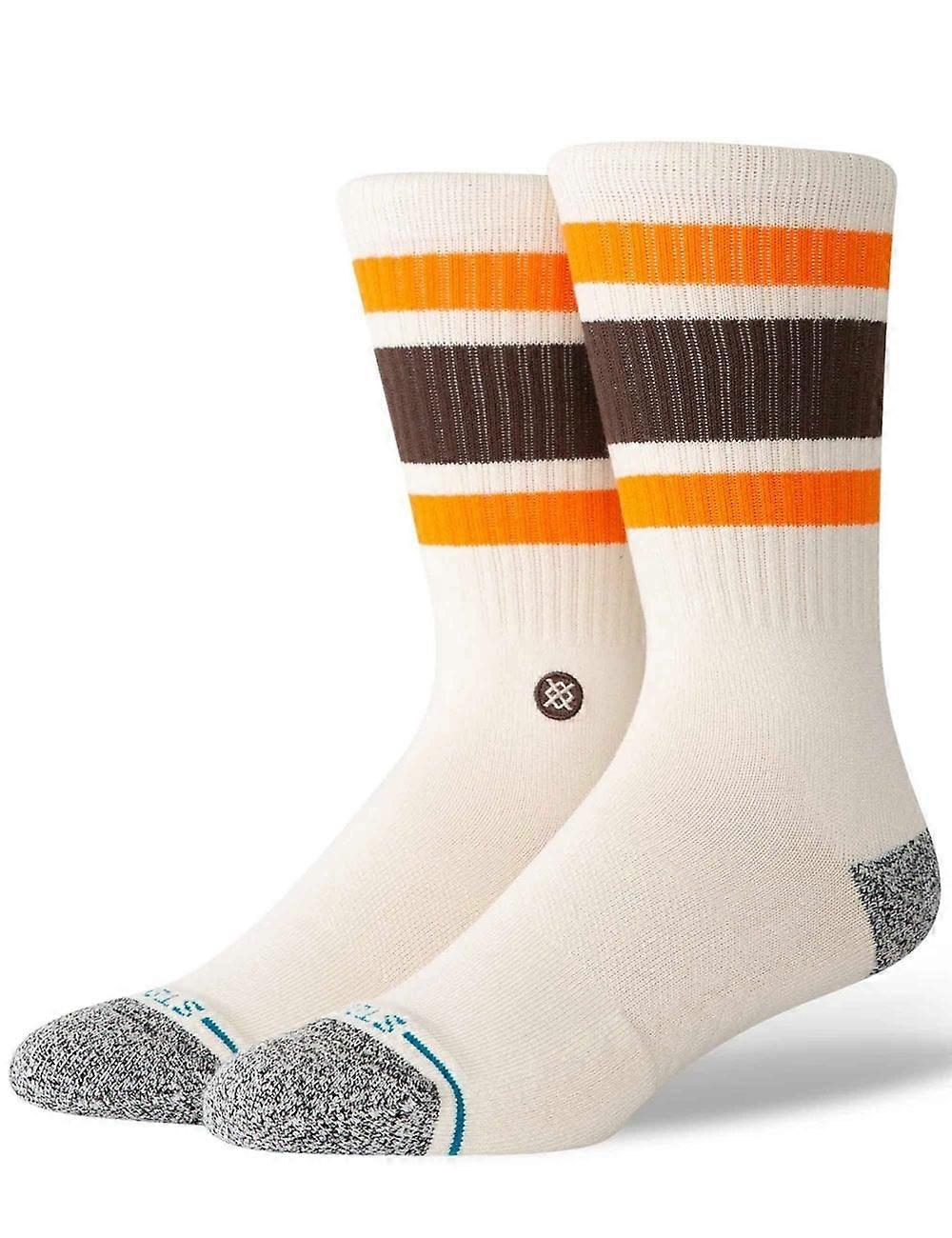 Introducing the Stance Boyd Socksâyour go-to crew socks for everyday comfort and style, now available in a timeless Off White color. Crafted from a premium blend of 40% cotton, 40% nylon, 16% polyester, and 4% elastane, these socks are designed to provide durability, comfort, and a perfect fit.Let's delve into what makes the Stance Boyd Socks a must-have. They feature a light cushioning that offers just the right amount of support without feeling bulky. The ribbed design not only enhances comfort but also ensures a secure fit that stays in place all day long.As with all Stance socks, these aren't just socksâthey're a statement piece. The Stance branding is prominently displayed, adding a touch of authenticity and quality craftsmanship to your sock collection. The blend of materials provides breathability and flexibility, making these socks suitable for any occasion, whether you're lounging at home or out and about. Whether you're looking for socks to pair with sneakers or boots, the Stance Boyd Socks are your perfect choice for comfort and style that lasts.For all things Stance, just press here.Stance Socks Boyd Socks Off White 40% Cotton, 40% Nylon, 16% Polyester, 4% Elastane Light Cushioned Crew Socks Ribbed Stance Branded M: UK 5.5 - 87, L: UK 8 - 11.5 A556A20BOS-OFW Description By: APM