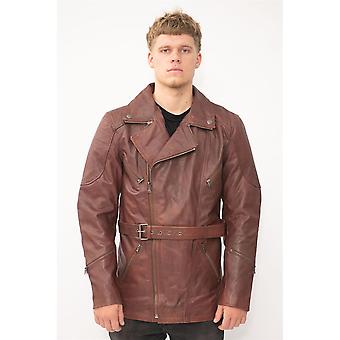 Mens Tan Cross Zip Mid-Length CE Armour Biker Jacket