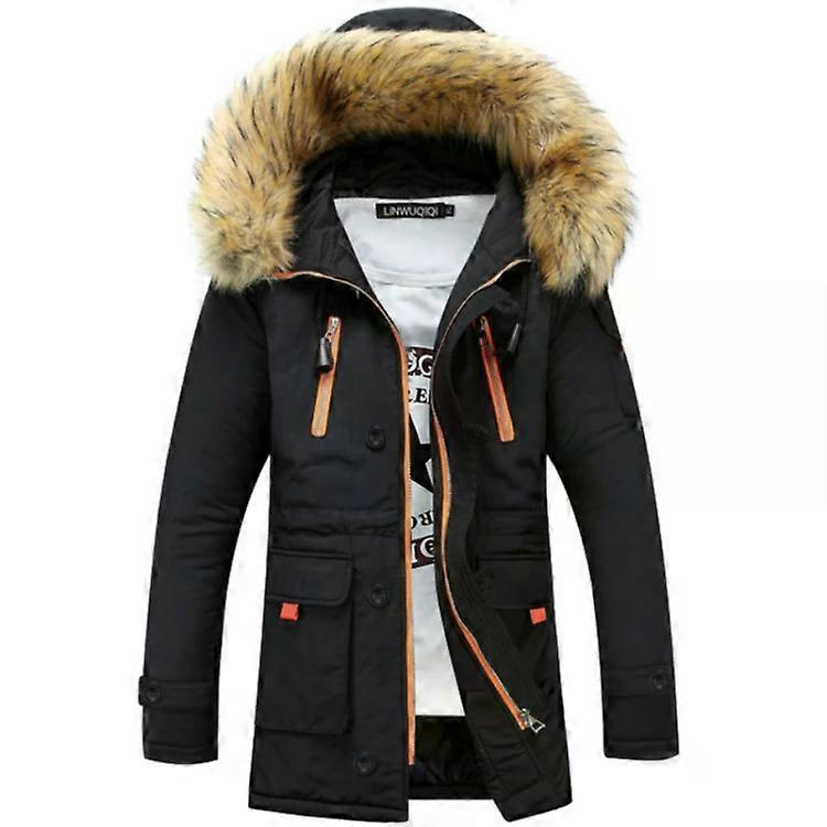 Men's Velvet Thick Warm Jacket-Long Cotton Coat with Fur Collar,Black,Size: XXXX-L/XXXXXL Black,XXXXL