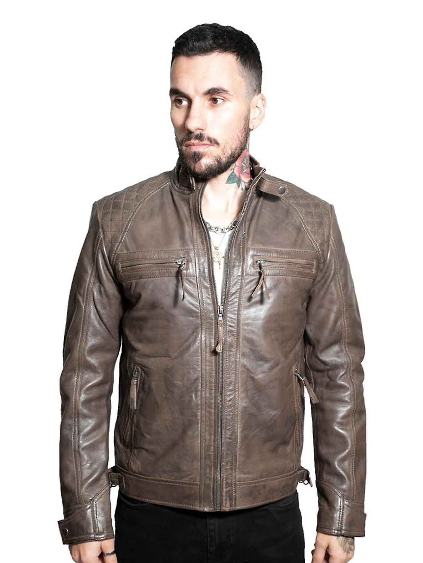 Men's Vintage Brown Leather Rock Racing Quilted Biker Jacket