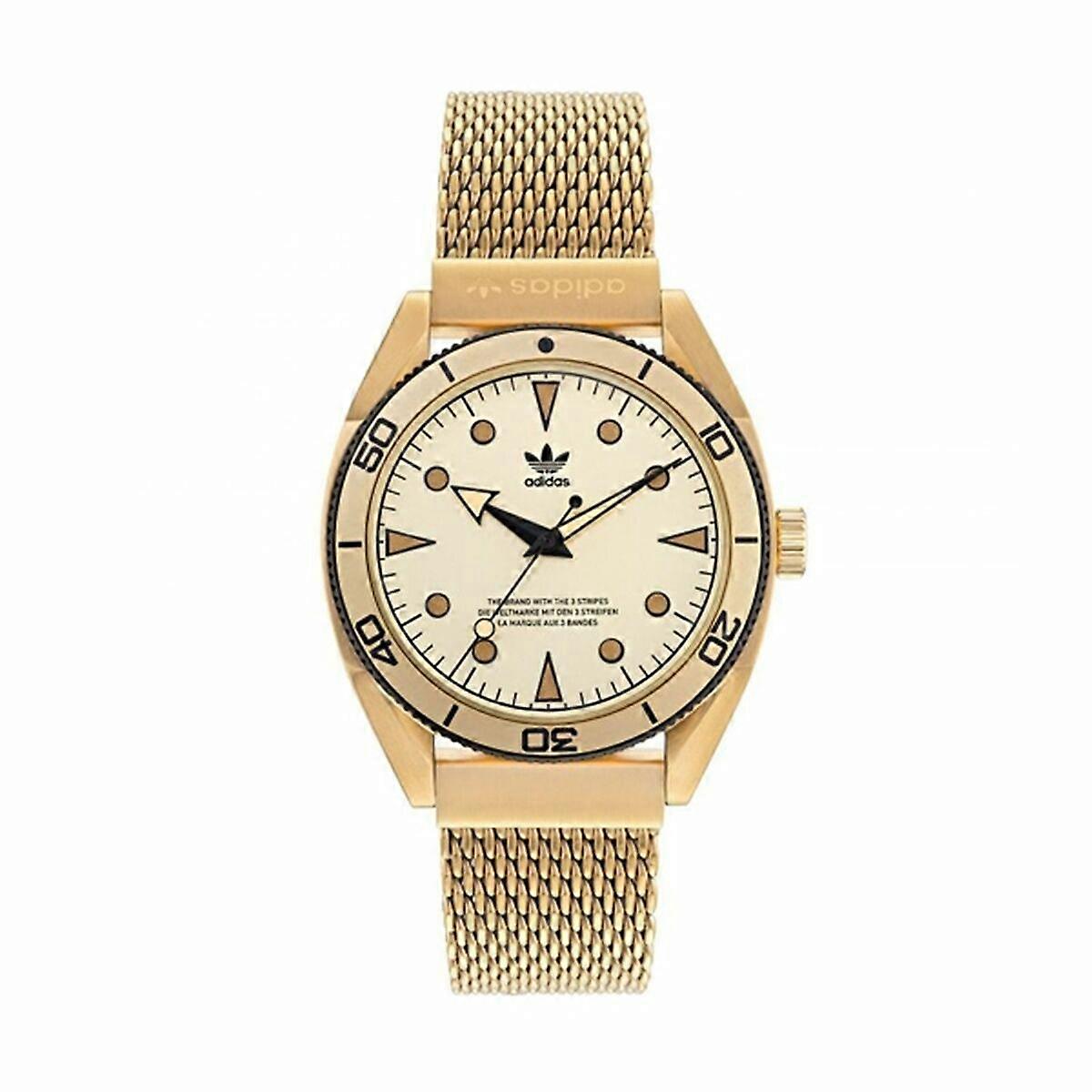 If you like keeping up with the latest fashion and accessory trends, buy Men's Watch Adidas (Ø 42 mm) at the best price. Gender: MenExtra links: NoType of watch: WristwatchBracelet material: Stainless steelWatch Case Material: Stainless steelType of movement: QuartzCrystal: MineralWater resistance: 10 atmIncludes: Includes the brand's caseType of fastening: BuckleWatch face colour: GoldenWatch case colour: GoldenStrap colour: GoldenWatch case diameter: Ø 42 mm