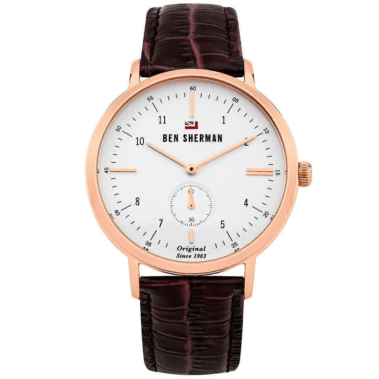 Model: Mens Watch Ben Sherman WBS102TRG, Quartz, 41mm, 5ATM. Brand: Ben Sherman. Package Weight: 0.5 Kg. Movement: Quartz. Case Color: White. Watchband Color: Brown. Watchband Material: Leather. Case width: 41 mm.