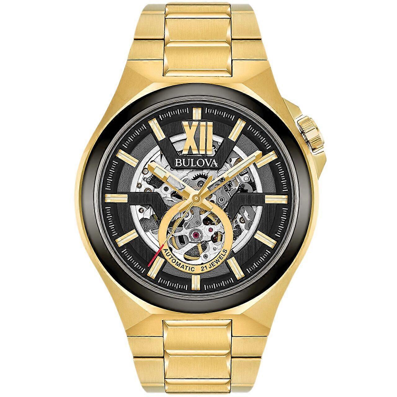 Model: Mens Watch Bulova 98A178, Automatic, 46mm, 10ATM. Brand: Bulova. Package Weight: 0.5 Kg. Movement: Automatic. Case Color: Black. Watchband Color: Gold. Watchband Material: Steel. Case width: 46 mm.