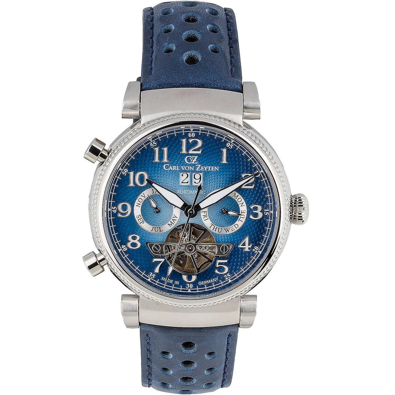 Model: Mens Watch Carl Von Zeyten CVZ0075BLS, Automatic, 44mm, 3ATM. Brand: Carl Von Zeyten. Package Weight: 0.5 kg. Movement: Automatic. Case Color: Blue. Watchband Color: Blue. Watchband Material: Leather. Case width: 44 mm.