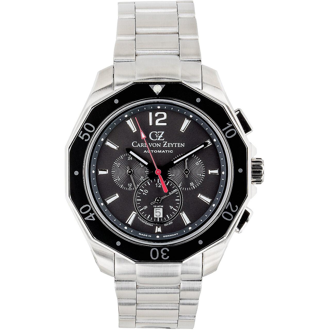 Model: Mens Watch Carl Von Zeyten CVZ0079GYMS, Automatic, 46mm, 10ATM. Brand: Carl Von Zeyten. Package Weight: 0.5 kg. Movement: Automatic. Case Color: Black. Watchband Color: Silver. Watchband Material: Steel. Case width: 46 mm.