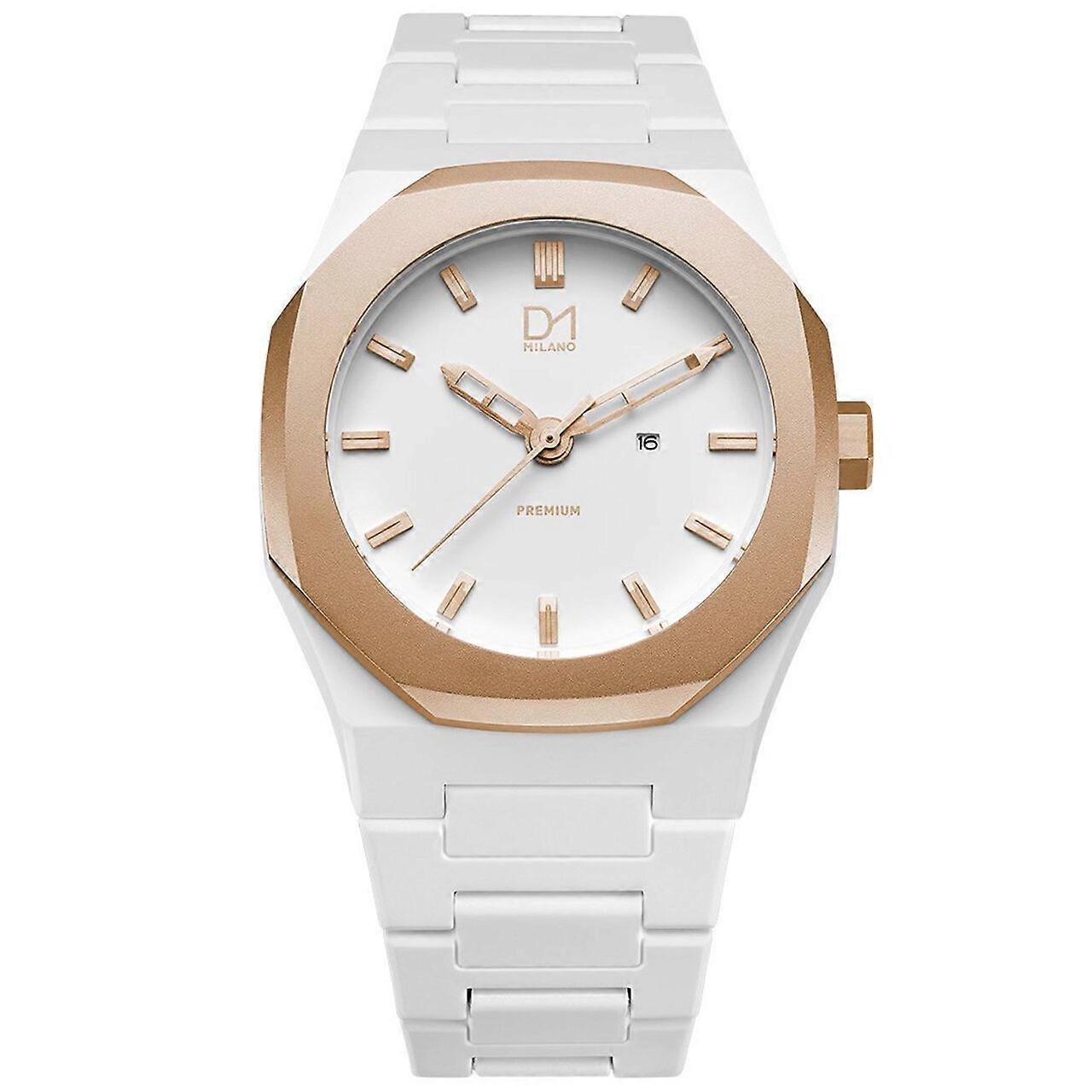 Model: Mens Watch D1 Milano PR07, Quartz, 40mm, 5ATM. Brand: D1 Milano. Package Weight: 0.5 Kg. Movement: Quartz. Case Color: White. Watchband Color: White. Watchband Material: Resin. Case width: 40 mm.