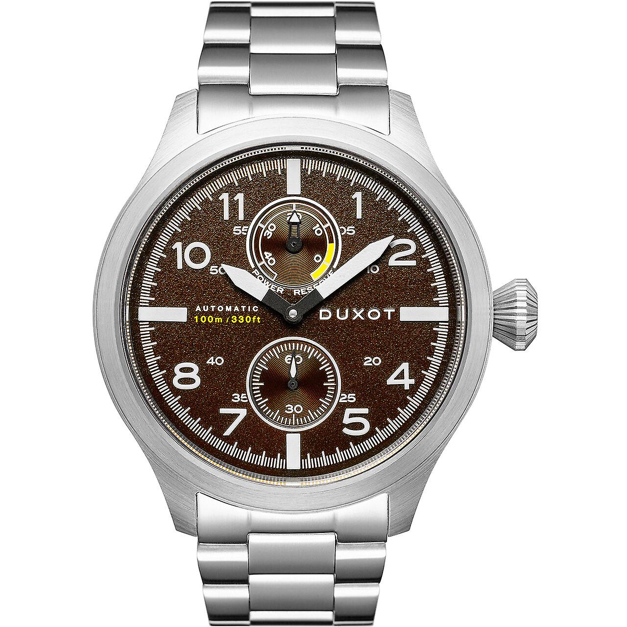 Model: Mens Watch Duxot DX-2020-33, Automatic, 46mm, 10ATM. Brand: Duxot. Package Weight: 0.5 kg. Movement: Automatic. Case Color: Brown. Watchband Color: Silver. Watchband Material: Steel. Case width: 46 mm.