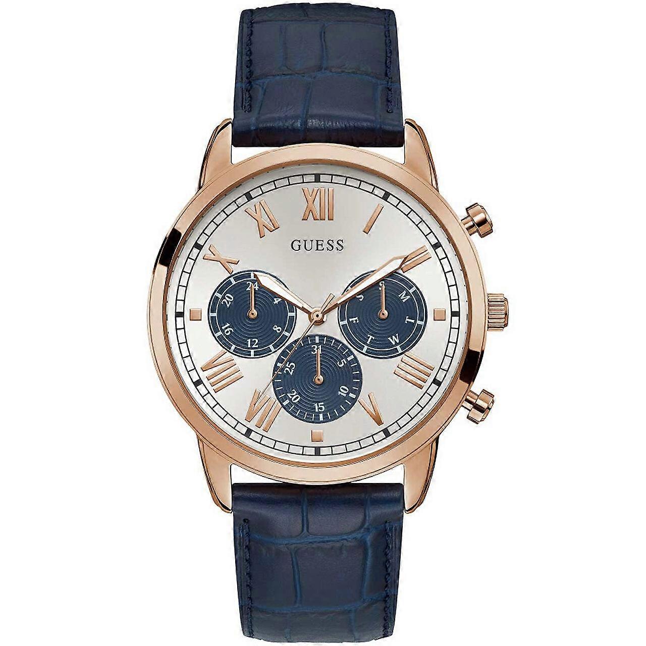 Model: Mens Watch Guess W1261G4, Quartz, 44mm, 5ATM. Brand: Guess. Package Weight: 0.5 kg. Movement: Quartz. Case Color: White. Watchband Color: Blue. Watchband Material: Leather. Case width: 44 mm.