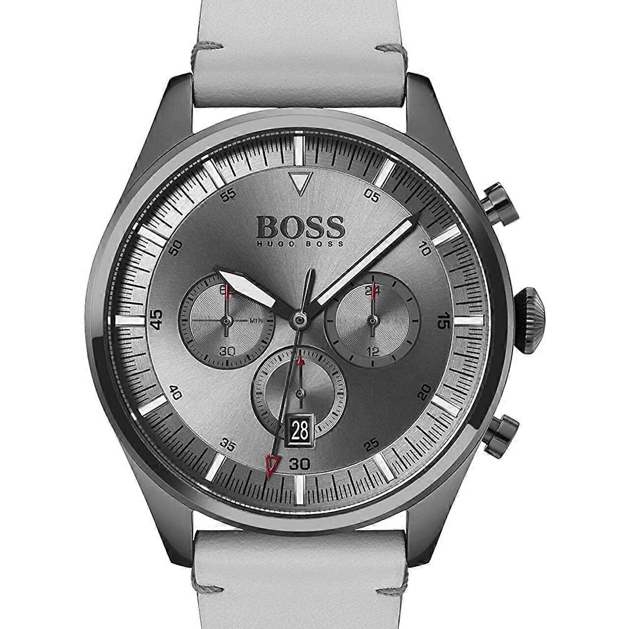 Model: Mens Watch Hugo Boss 1513710, Quartz, 44mm, 5ATM. Brand: Hugo Boss. Package Weight: 0.5 Kg. Movement: Quartz. Case Color: Grey. Watchband Color: Grey. Watchband Material: Leather. Case width: 44 mm.