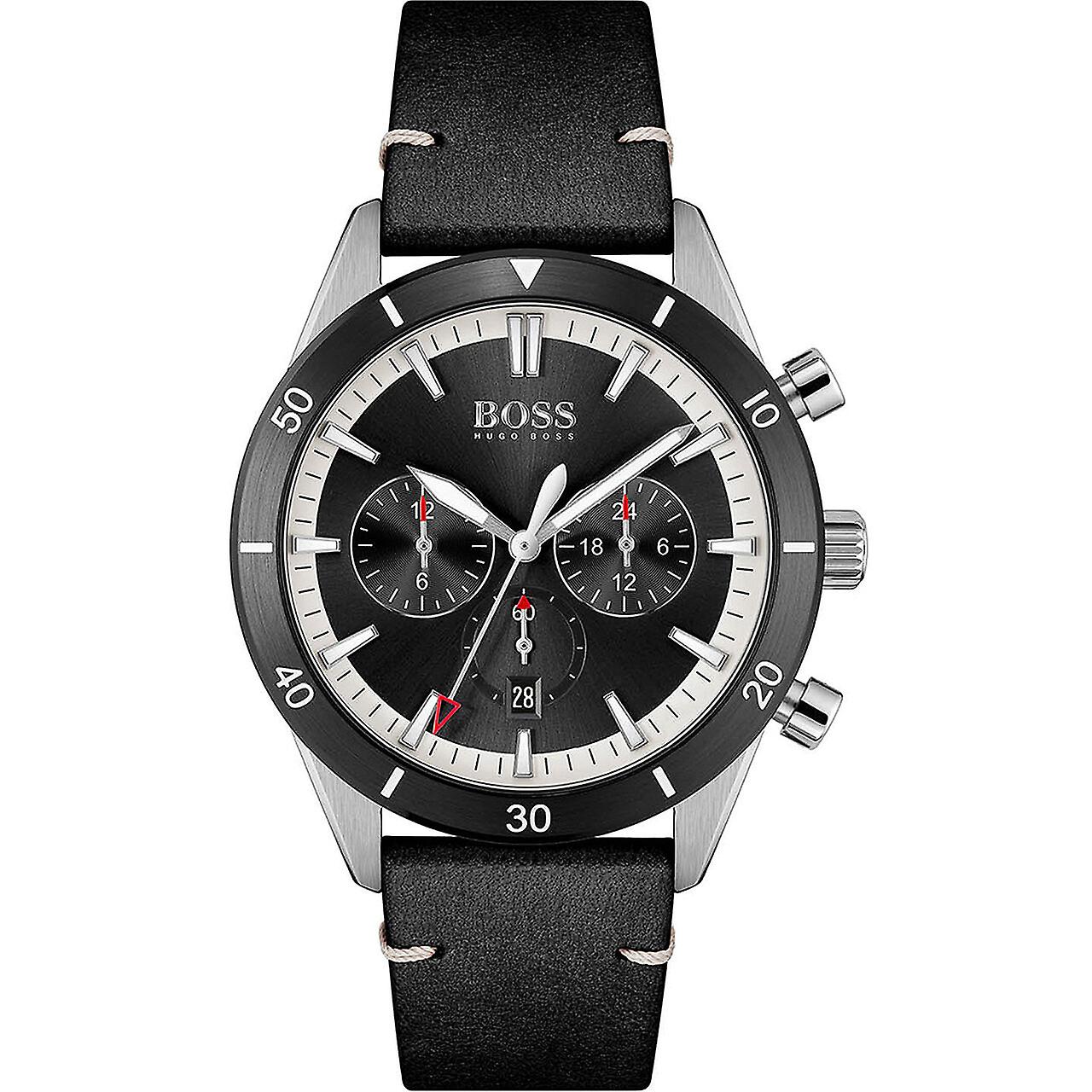 Model: Mens Watch Hugo Boss 1513864, Quartz, 44mm, 5ATM. Brand: Hugo Boss. Package Weight: 0.5 kg. Movement: Quartz. Case Color: Black. Watchband Color: Black. Watchband Material: Leather. Case width: 44 mm.