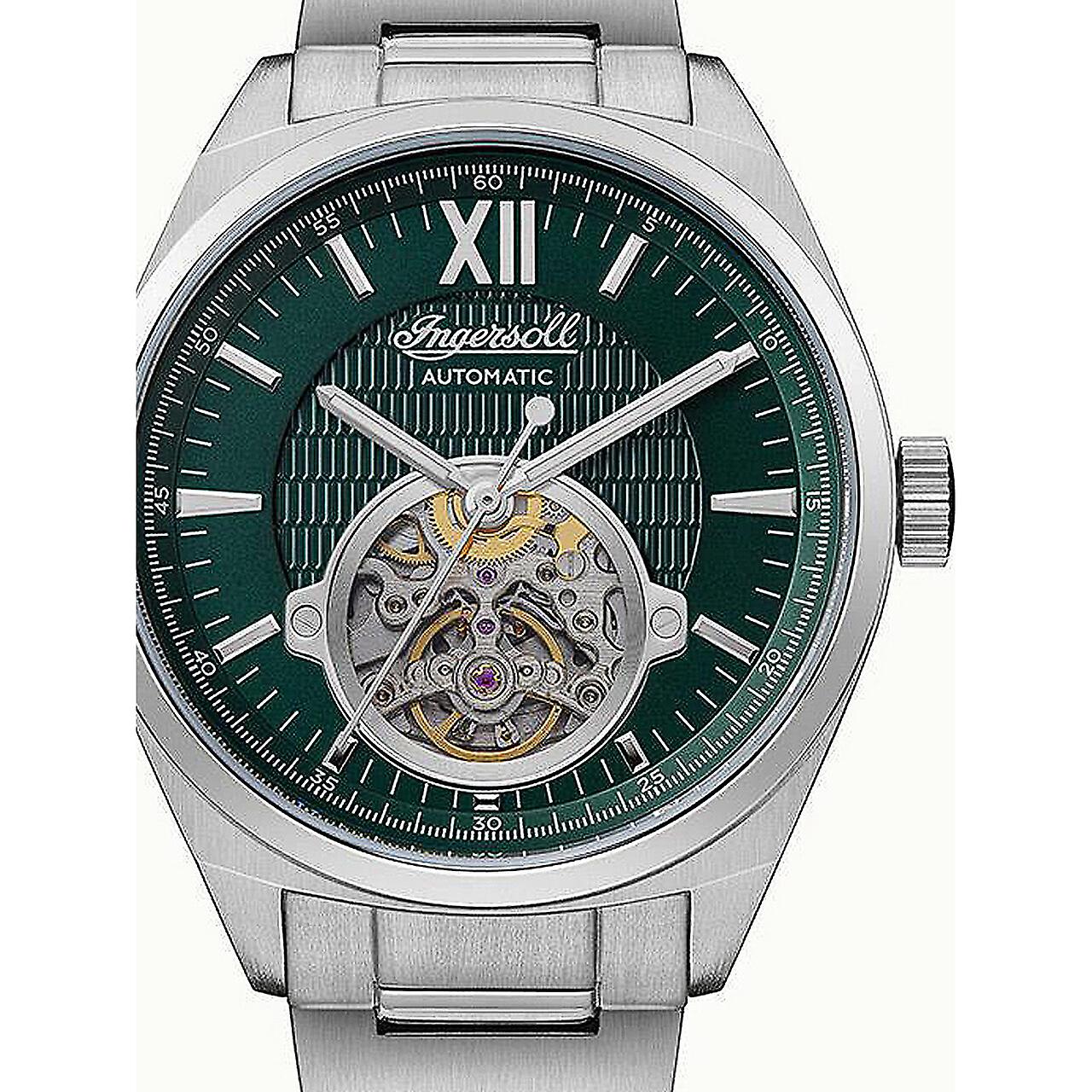 Model: Mens Watch Ingersoll I10903B, Automatic, 44mm, 5ATM. Brand: Ingersoll. Package Weight: 0.5 kg. Movement: Automatic. Case Color: Green. Watchband Color: Silver. Watchband Material: Steel. Case width: 44 mm.