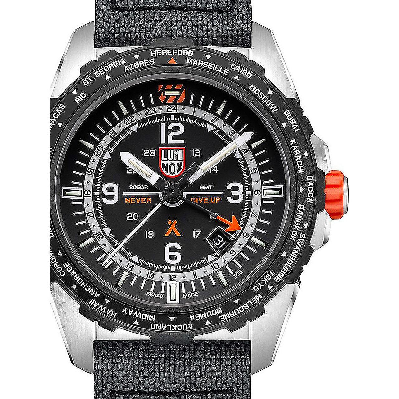 Model: Mens Watch Luminox XB.3761, Quartz, 45mm, 20ATM. Brand: Luminox. Package Weight: 0.5 kg. Movement: Quartz. Case Color: Black. Watchband Color: Grey. Watchband Material: Nylon Strap. Case width: 45 mm.