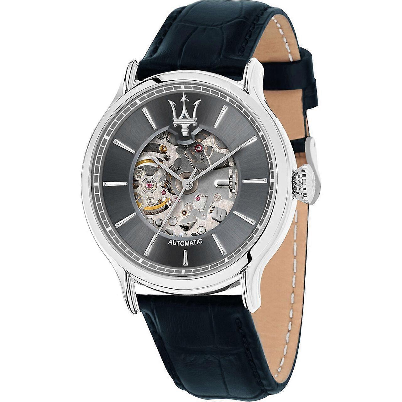 Model: Mens Watch Maserati R8821118008, Automatic, 45mm, 10ATM. Brand: Maserati. Package Weight: 0.5 kg. Movement: Automatic. Case Color: Grey. Watchband Color: Black. Watchband Material: Leather. Case width: 45 mm.