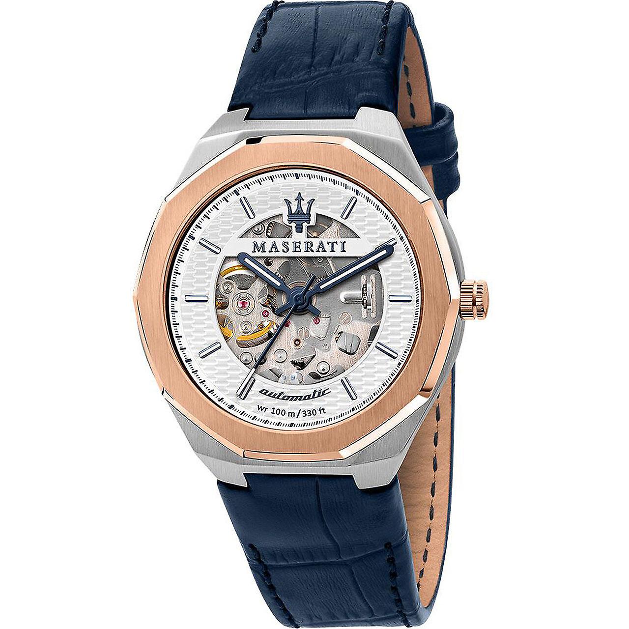Model: Mens Watch Maserati R8821142001, Automatic, 42mm, 10ATM. Brand: Maserati. Package Weight: 0.5 kg. Movement: Automatic. Case Color: White. Watchband Color: Blue. Watchband Material: Leather. Case width: 42 mm.