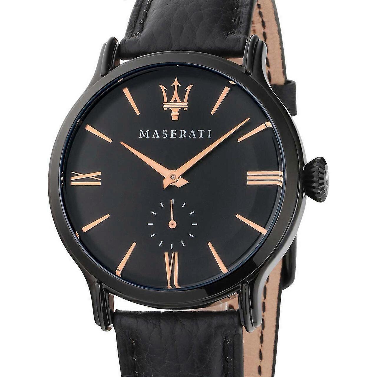 Model: Mens Watch Maserati R8851118004, Quartz, 42mm, 5ATM. Brand: Maserati. Package Weight: 0.5 kg. Movement: Quartz. Case Color: Black. Watchband Color: Black. Watchband Material: Leather. Case width: 42 mm.