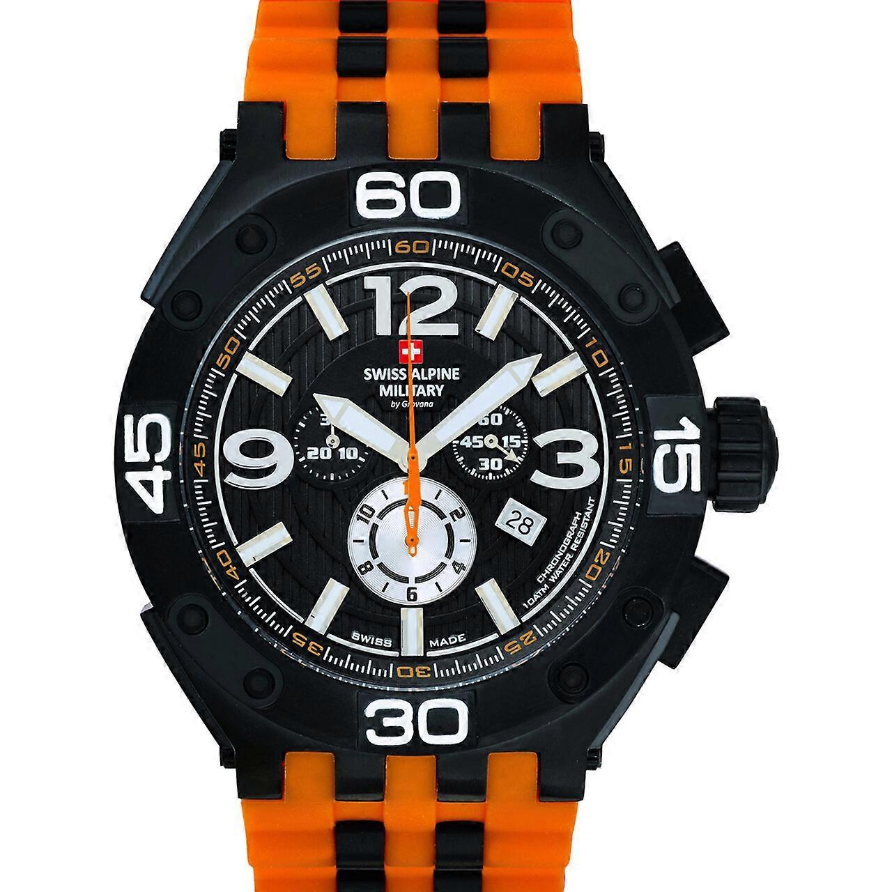 Model: Mens Watch Swiss Alpine Military 7032.9879, Quartz, 50mm, 10ATM. Brand: Swiss Alpine Military. Package Weight: 0.5 kg. Movement: Quartz. Case Color: Black. Watchband Color: Orange. Watchband Material: Silicone. Case width: 50 mm.