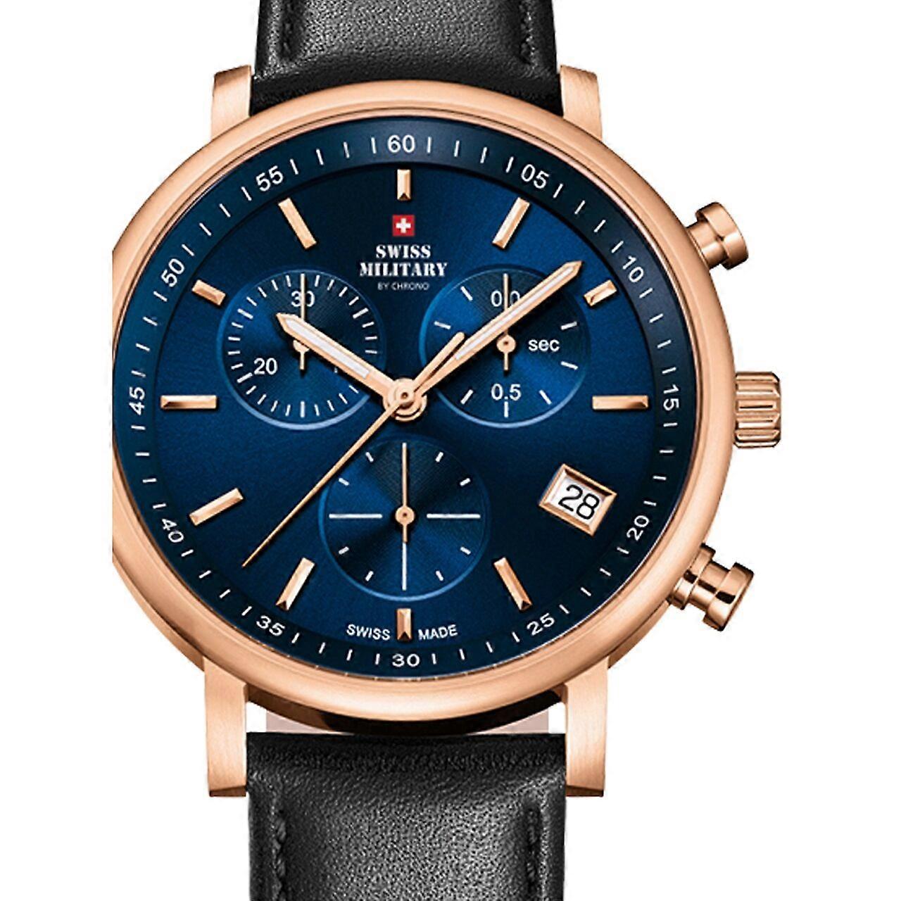 Model: Mens Watch Swiss Military By Chrono SM34058.09, Quartz, 42mm, 10ATM. Brand: Swiss Military By Chrono. Package Weight: 0.5 Kg. Movement: Quartz. Case Color: Blue. Watchband Color: Black. Watchband Material: Leather. Case width: 42 mm.