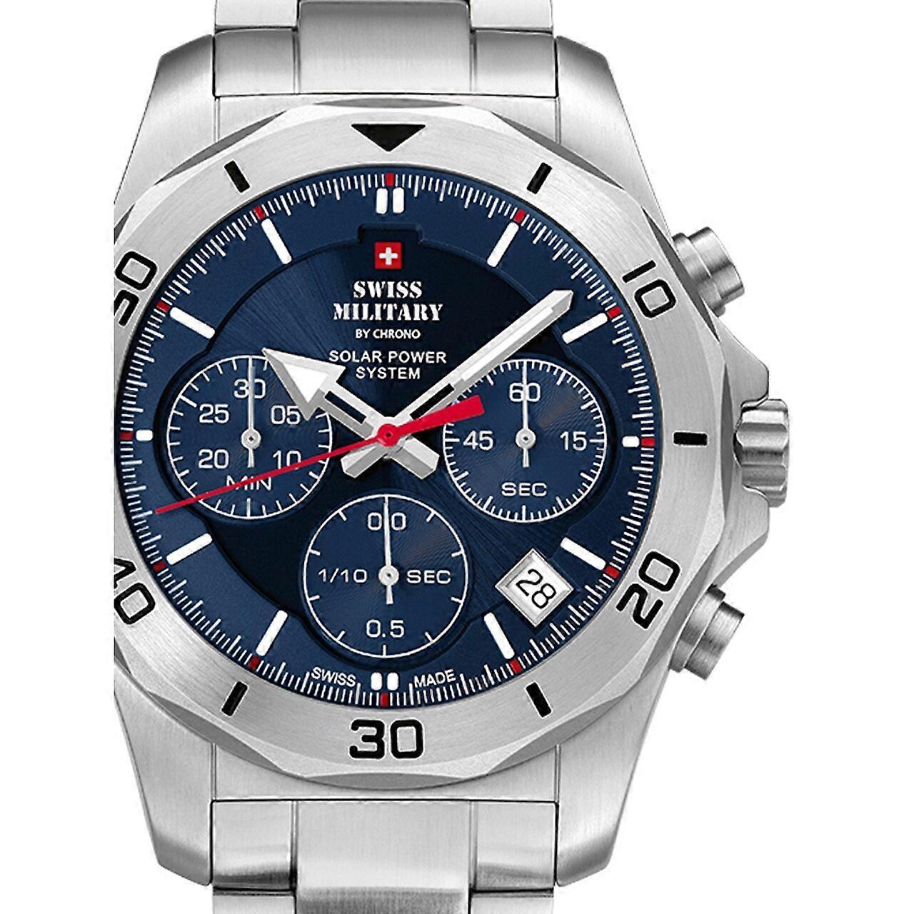 Model: Mens Watch Swiss Military By Chrono SMS34072.02, Quartz, 44mm, 10ATM. Brand: Swiss Military By Chrono. Package Weight: 0.5 Kg. Movement: Quartz. Case Color: Blue. Watchband Color: Silver. Watchband Material: Steel. Case width: 44 mm.