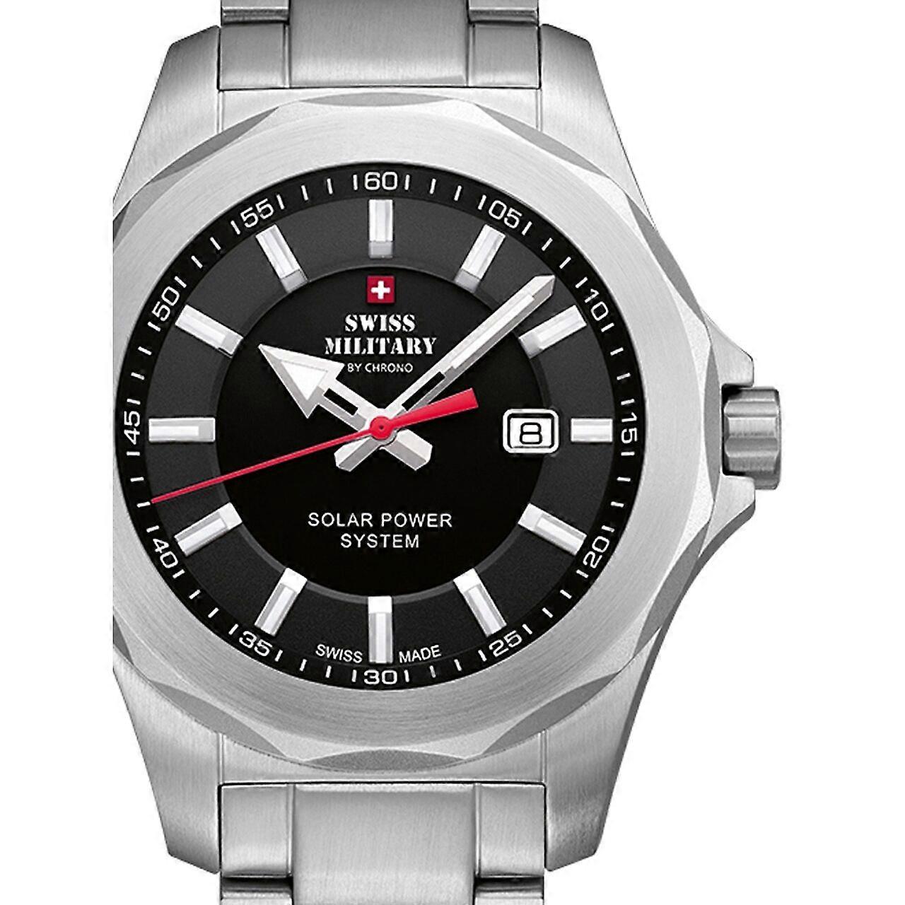 Model: Mens Watch Swiss Military By Chrono SMS34073.01, Quartz, 42mm, 10ATM. Brand: Swiss Military By Chrono. Package Weight: 0.5 Kg. Movement: Quartz. Case Color: Black. Watchband Color: Silver. Watchband Material: Steel. Case width: 42 mm.