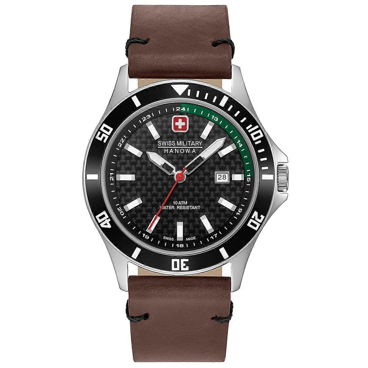 Model: Mens Watch Swiss Military Hanowa 06-4161.2.04.007.06, Quartz, 42mm, 10ATM. Brand: Swiss Military Hanowa. Package Weight: 0.5 Kg. Movement: Quartz. Case Color: Black. Watchband Color: Brown. Watchband Material: Leather. Case width: 42 mm.
