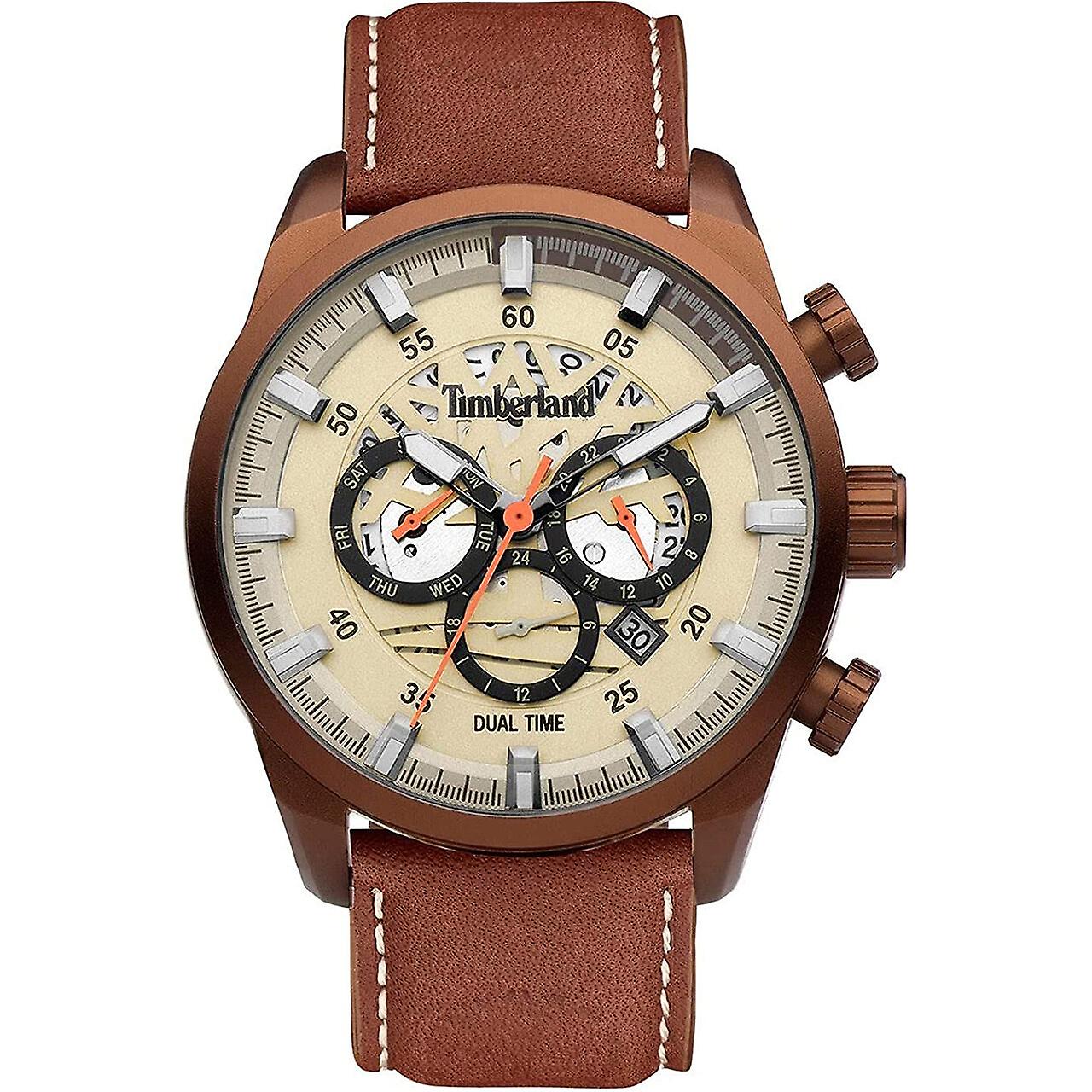 Model: Mens Watch Timberland TDWGF2100604, Quartz, 47mm, 5ATM. Brand: Timberland. Package Weight: 0.5 kg. Movement: Quartz. Case Color: Cream. Watchband Color: Brown. Watchband Material: Leather. Case width: 47 mm.