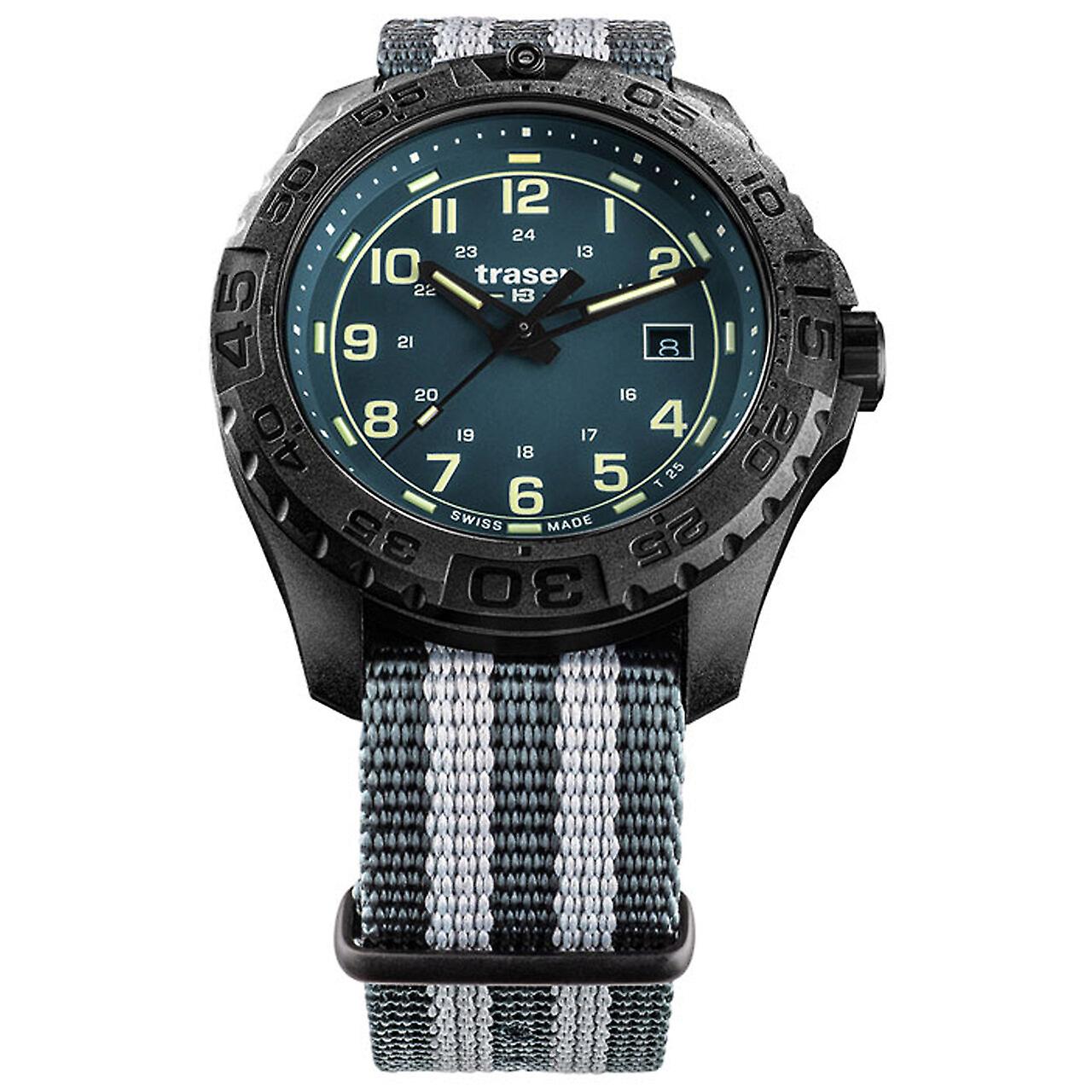 Model: Mens Watch Traser H3 109041, Quartz, 44mm, 20ATM. Brand: Traser H3. Package Weight: 0.5 Kg. Movement: Quartz. Case Color: Blue. Watchband Color: Grey. Watchband Material: Nylon Strap. Case width: 44 mm.