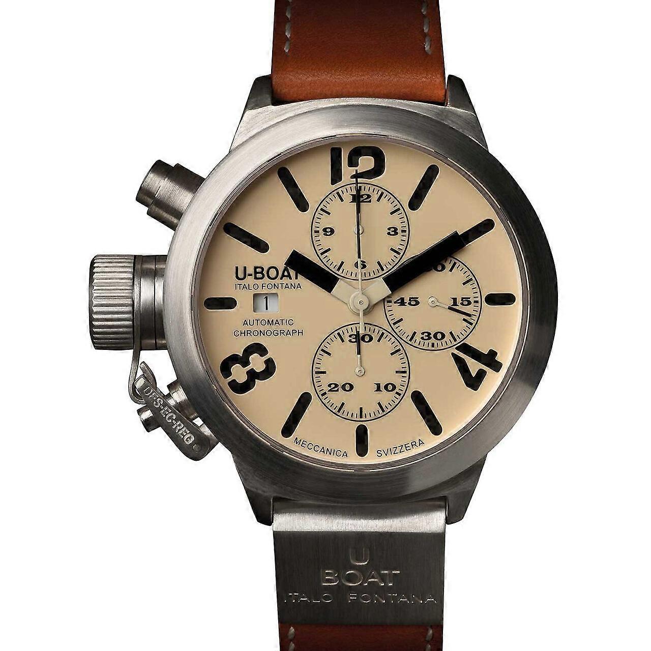 Model: Mens Watch U-Boat 2062, Automatic, 53mm, 5ATM. Brand: U-Boat. Package Weight: 0.5 kg. Movement: Automatic. Case Color: Beige. Watchband Color: Brown. Watchband Material: Leather. Case width: 53 mm.
