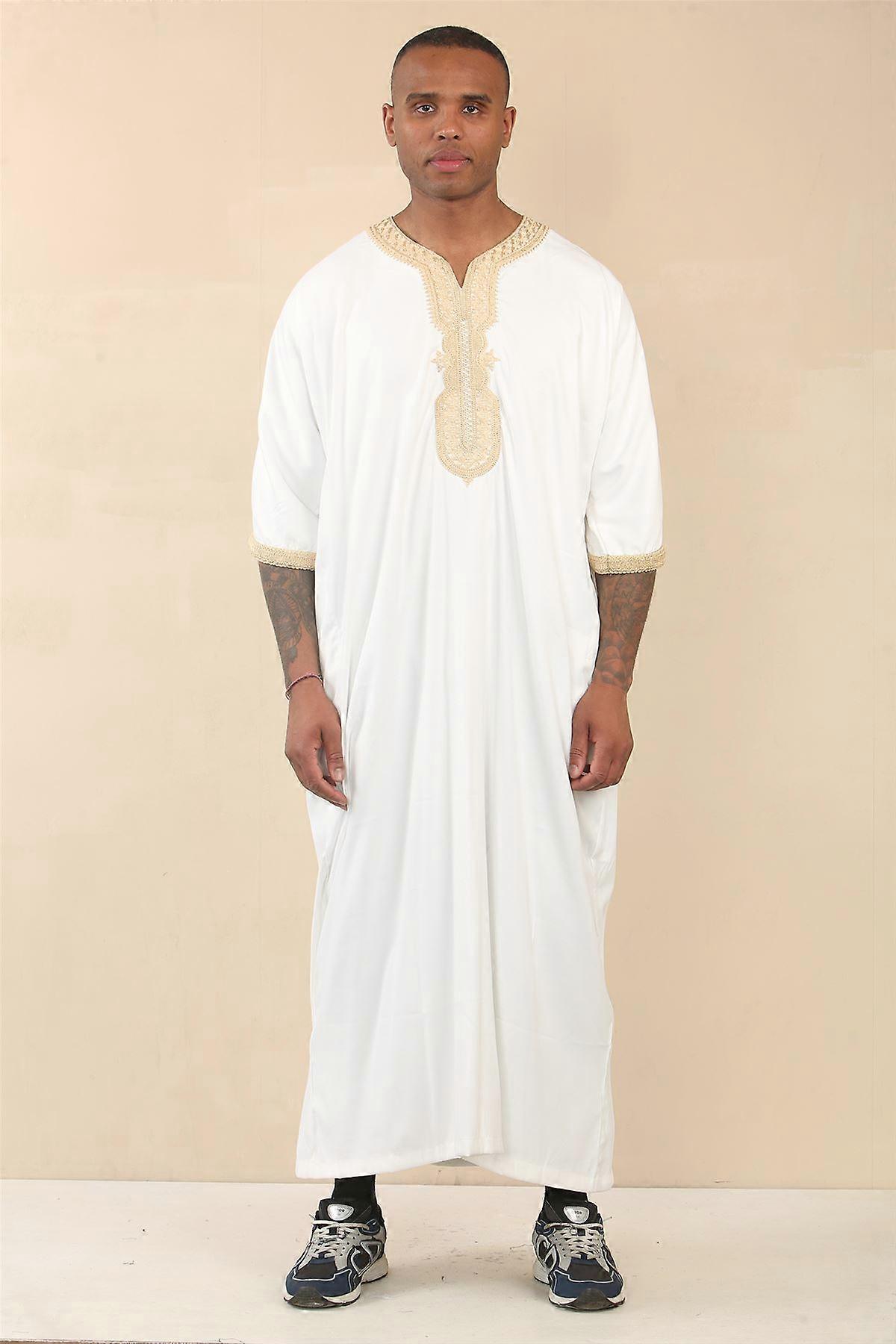 Men's White Moroccan Thobe Jubba Robe Eid Djellaba Gandoura