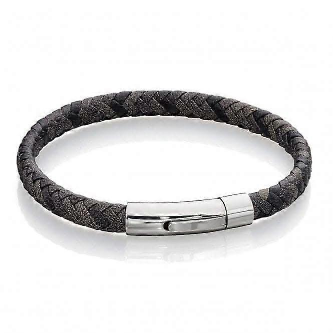 Mens Woven Grey Leather Clip Clasp Bracelet B5276