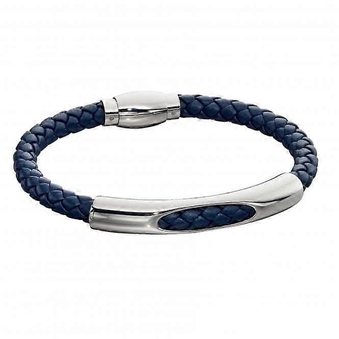 Mens Woven Navy Blue Leather Magnetic Clasp Bracelet B5279