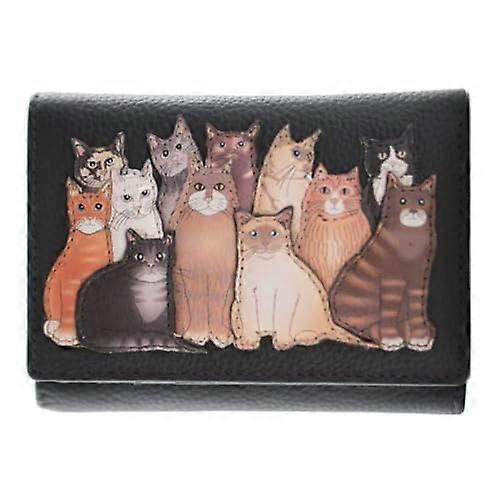 Meowfia Cats Tri-Fold Purse by Mala Genuine Leather RFID Wallet with Card Slots Coin Pocket Dust Bag Dark Grey 11 8 3 cm