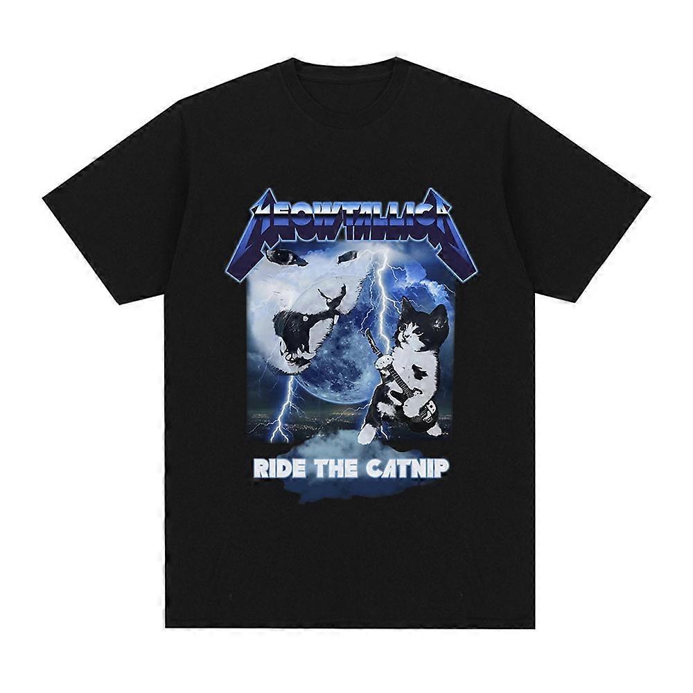 Meowtallica Women's Funny Cat Expression Pack T-shirt Heavy Metal Rock Cat Shirt Casual Fashion Loose Top Graphic T Shirts Y2K