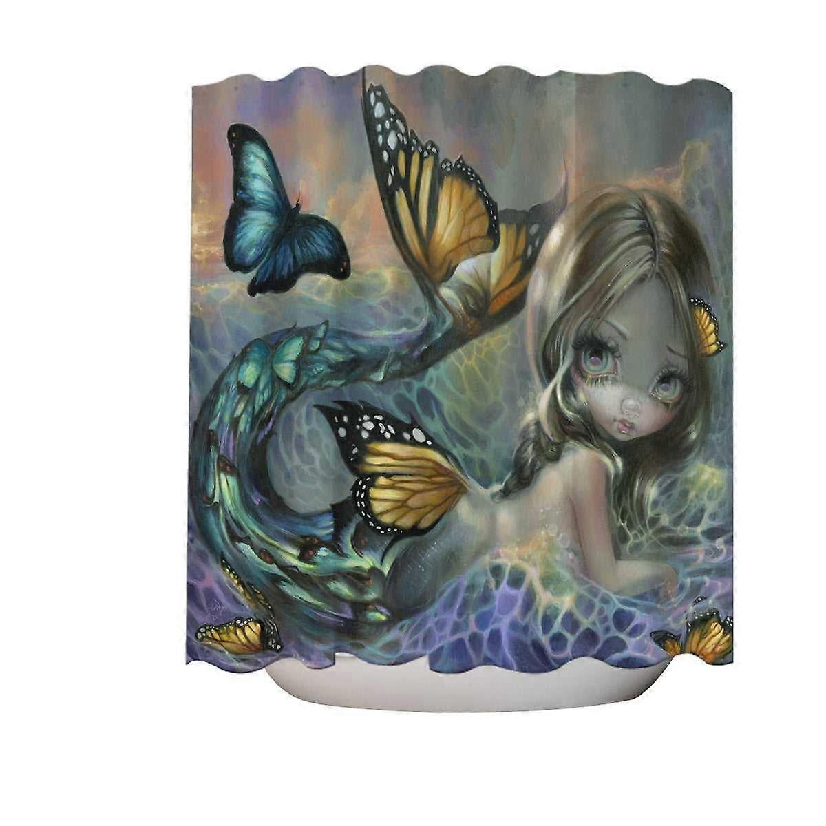 Mermaid and Butterflies Fantasy Painting Sea Monarch Shower Curtain