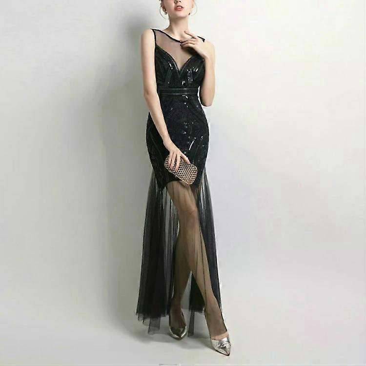 Mermaid Evening Dress-Black Sequins Beading Formal Prom Dress S by Black,S