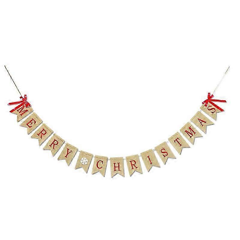 Merry Christmas Banner, Christmas Burlap Bunting Banner Vintage Jute Christmas Garland Christmas Banners Indoor Hanging Wall Fireplace Window Christma