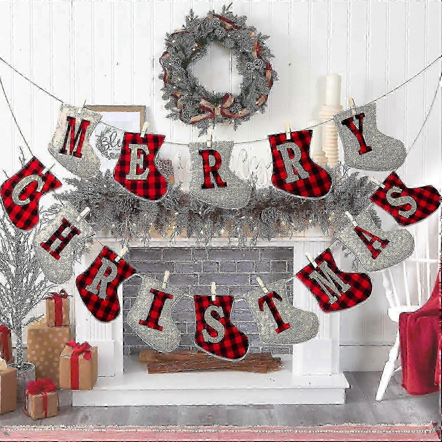 Packaging content: You will get a Merry Christmas banner with clips, exquisite Christmas decorations that are not only durable, but also beautifully designed to bring holiday joy and warmth to your family and meet your Christmas decoration use needs.Material: This merry Christmas ornament is made of high quality thick twine material that is very durable. This material is suitable for decorations for party celebrations and can be kept in good condition for many purposes.Beautiful design: Our Christmas banner has a classic sock shaped design. This warm and stylish design makes it a beautiful decoration for walls or Windows. You can also set it as the background of your Christmas photo to add to your holiday photos. Some special background elements.Widely used: Our Christmas decoration banner is very easy to use, it comes with clips that you can use to hang these socks on the Christmas tree, stair railing, wall or wherever you wish to decorate, it will be the ideal choice to enhance the festive atmosphere and create a warm Christmas atmosphere for your family.Note: Due to the light and screen setting difference, the item's color may be slightly different from the pictures. Please allow slight dimension difference due to different manual measurement. Sold by-Dadangjia