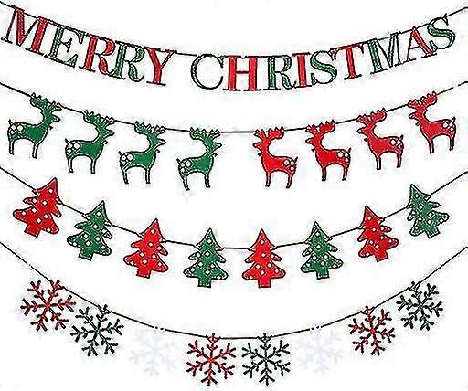 Description The Package Includes 4 Different Felt Christmas Banners Including 1 Snowflake Banner, 1 Letter Banner, 1 Christmas Tree Banner And 1 Moose Banner Material: Felt, The Size Of Each Banner Is Different, But The Overall Look Is Almost The Same Banner Length For Each The Setting Is 5.9Ft / 1.8M Decorate Your Home For Christmas To Add A Festive Atmosphere You Can Hang It On The Wall Or In The Garden, Or Use It To Decorate Your Christmas Tree. You Can See It Everywhere, It Will Be A Great Decoration For Your Home. It Will Create A Strong Christmas Atmosphere And Happy Holidays For Your Family In Advance. This Will Not Only Bring A Stronger Christmas Atmosphere To Your Family, But Also Bring You Great Happiness.