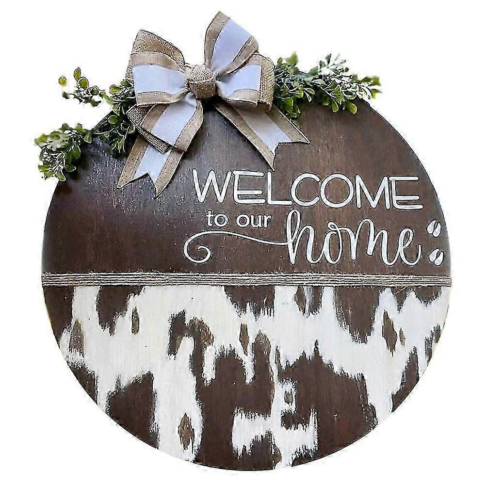 Merry Christmas Welcome Sign Round Wood Wreaths Wall Hanging Outdoor For Spring Summer Fall All Seasons