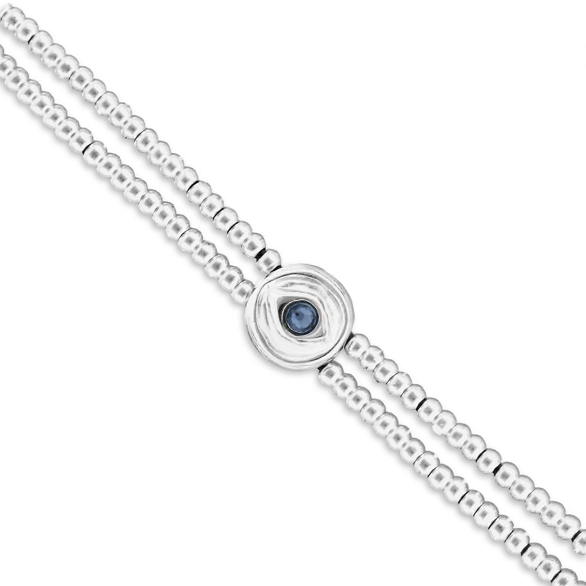 Metal Alloy Double Beaded Sterling Silver Eye Detail Blue Faceted Crystal Bracelet PUL2599AZUMTL0M