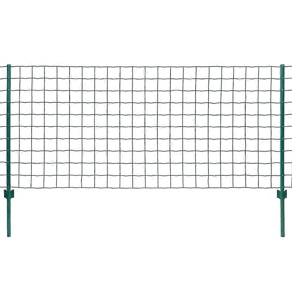 Farbe: GrünMaterial: PVC-beschichteter StahlZaungröße: 20 x 1 m (L x H)Maschenweite: 100 × 100 mm (L × B)Pfostenhöhe: 1,45 mEinfacher ZusammenbauDie Lieferung umfasst 1 Zaun und 11 Pfosten