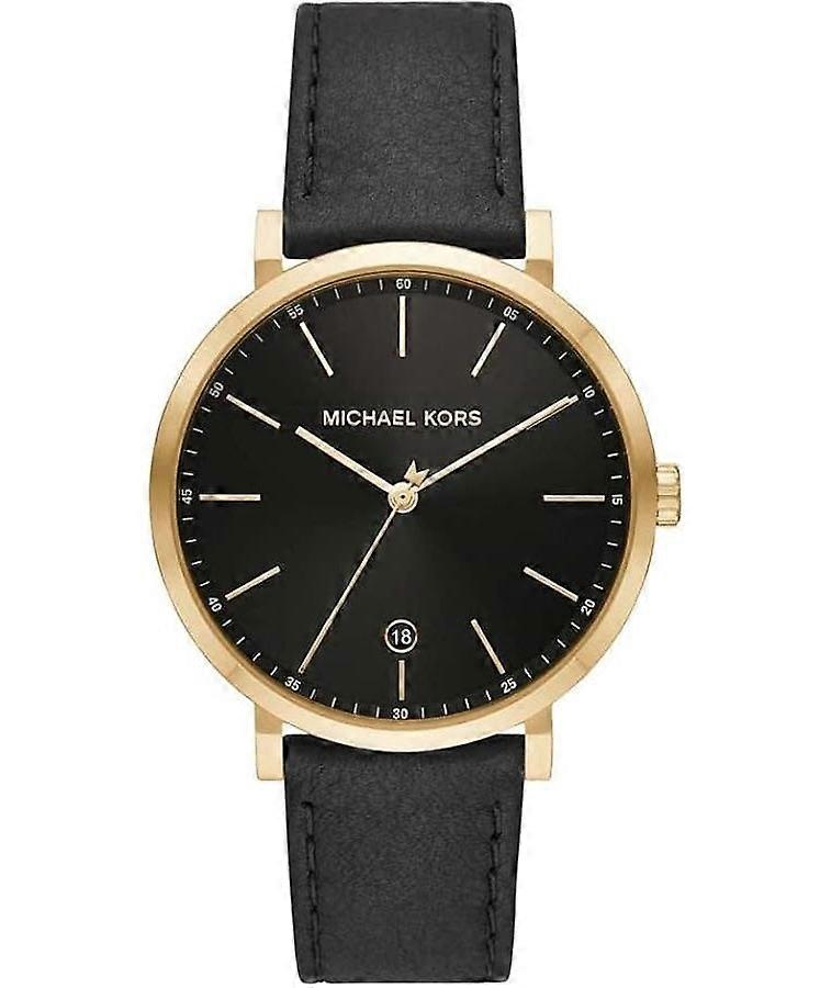 Michael Kors Mk8737 Men's Gold-tone Stainless Steel Watch, Black Leather Strap, 42mm