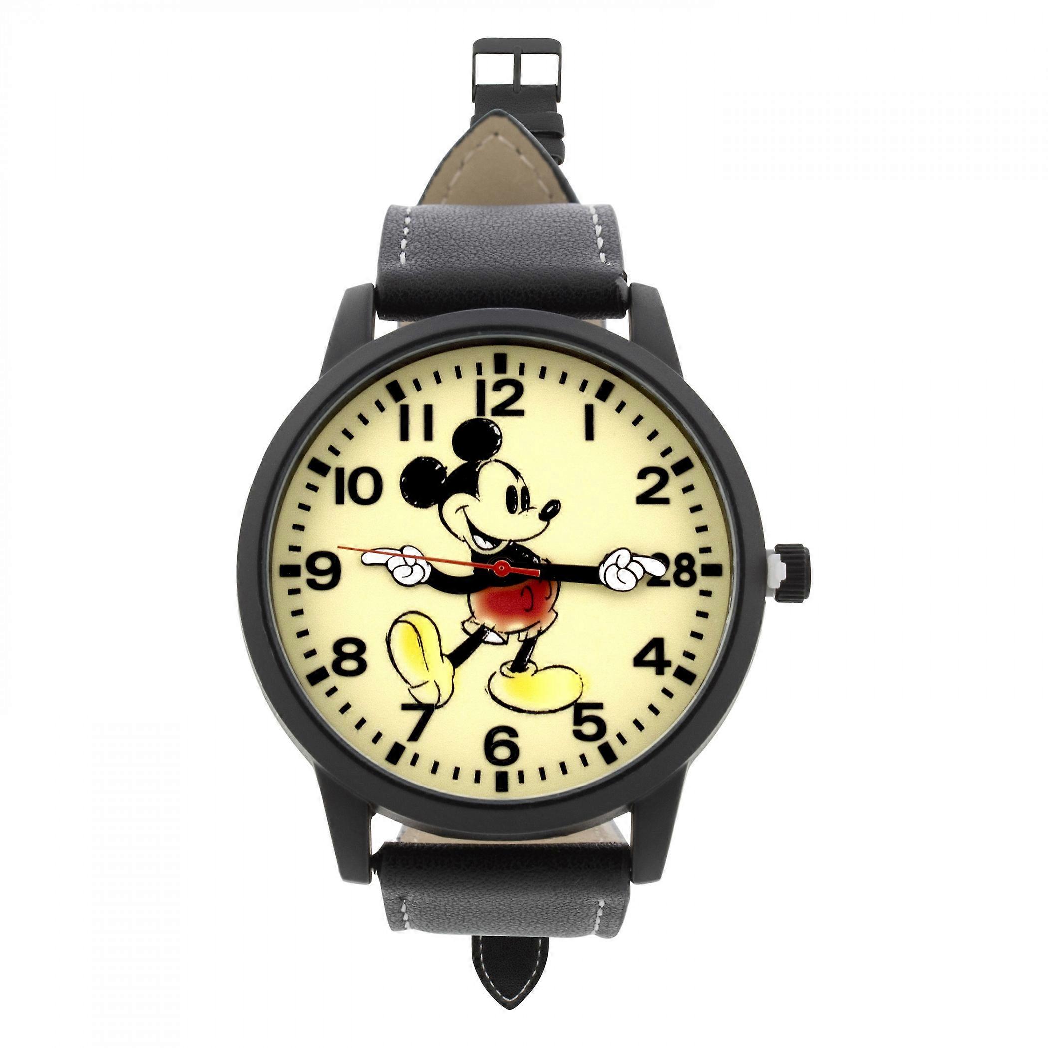 Mickey Mouse Retro Sketch Analog Watch with Faux Leather Band