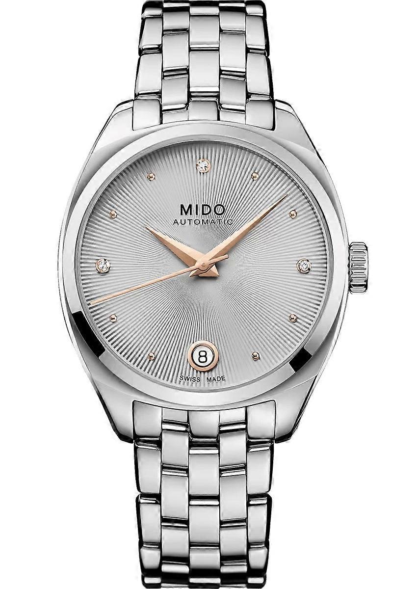 Mido Belluna Royal Lady M024.307.11.076.00 Automatic Women's Watch – Grey Dial, Pvd Rose-gold Coating, Stainless Steel Bracelet