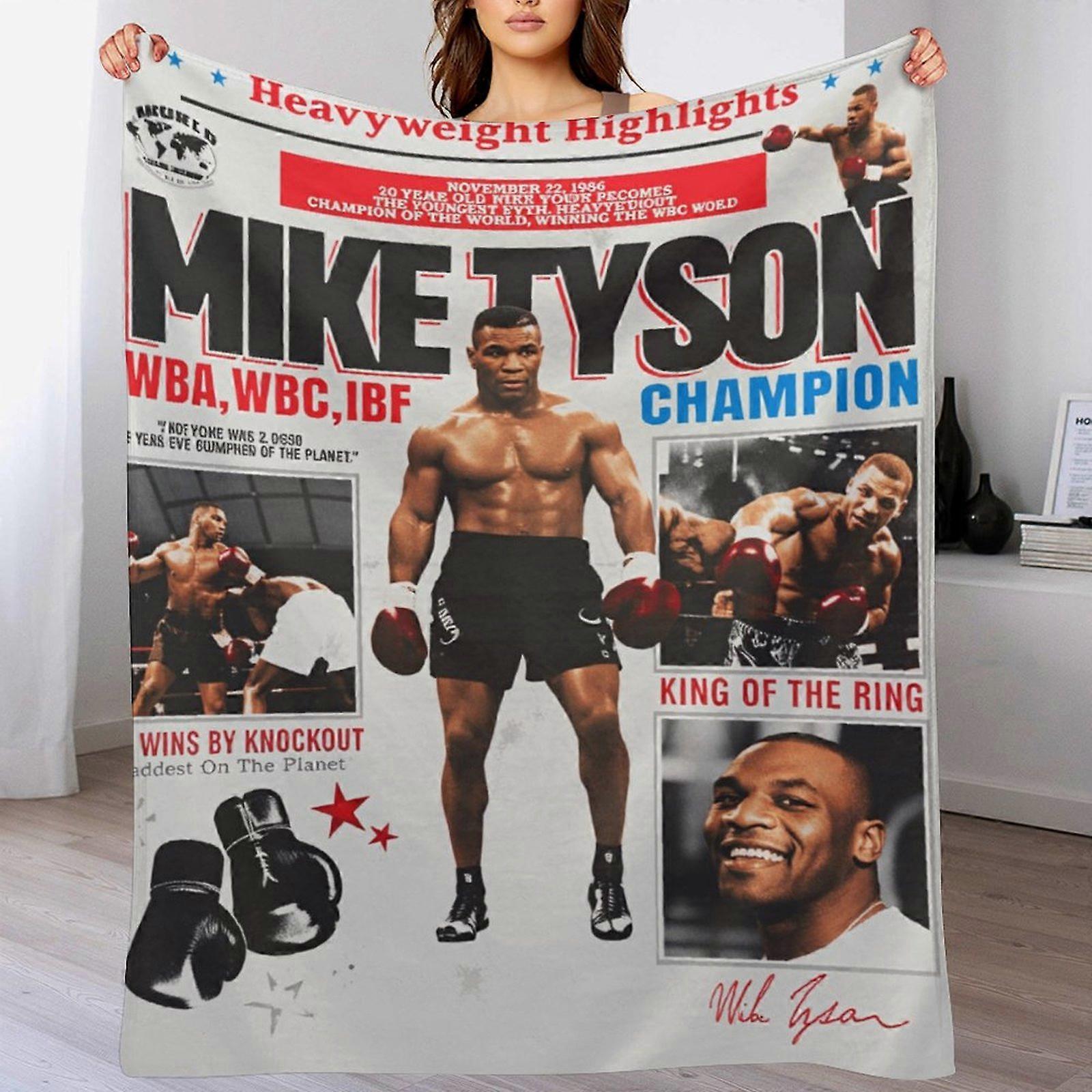 Mike Tyson "Heavyweight Highlights" Boxing Graphic & Champion Text Print Flannel Blanket - Soft Warm Throw, 50x60 Inch, Boxing Fan Gift (Bed/Living Ro