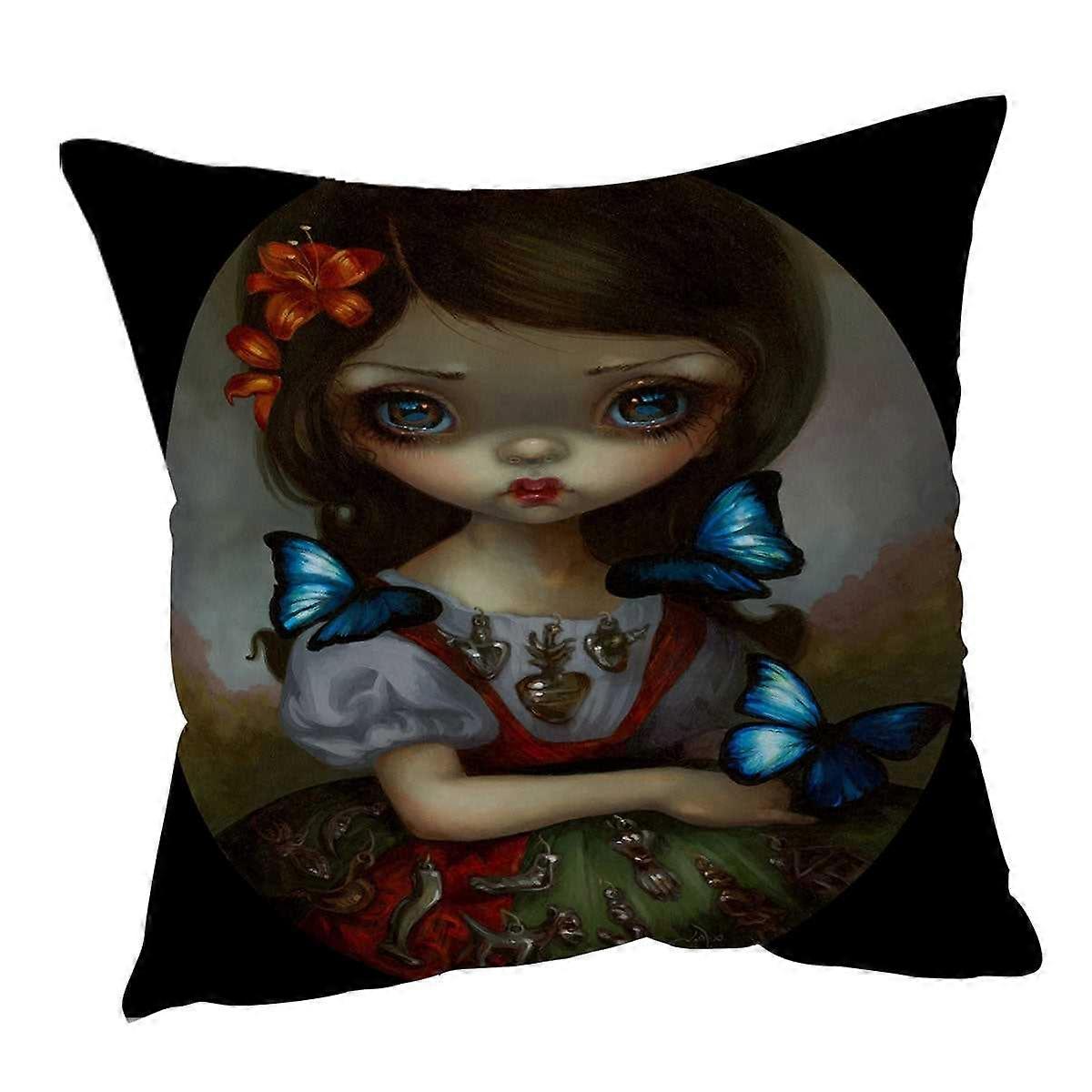 Milagros Mariposas Lovely Painted Girl with Flowers Cushion Cover